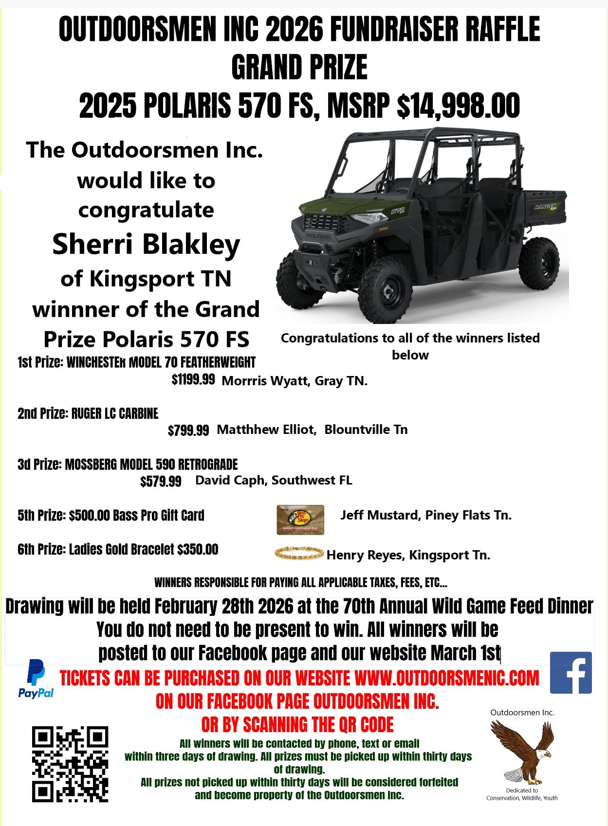We at the Outdoorsmen Inc. would like to thank all our sponsors, donors, volunteers, participants and especially our hard working club members.